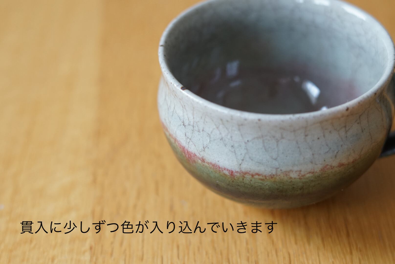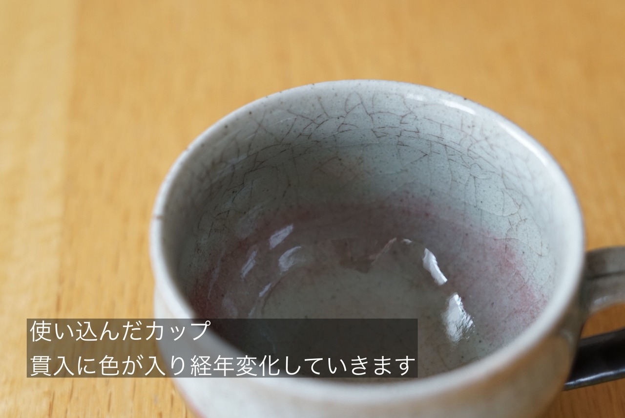たっぷり容量のカップですので、カフェオレやミルクティー、スープなどへも。使い込むほどに、味わい深い色合いに変化していきます。