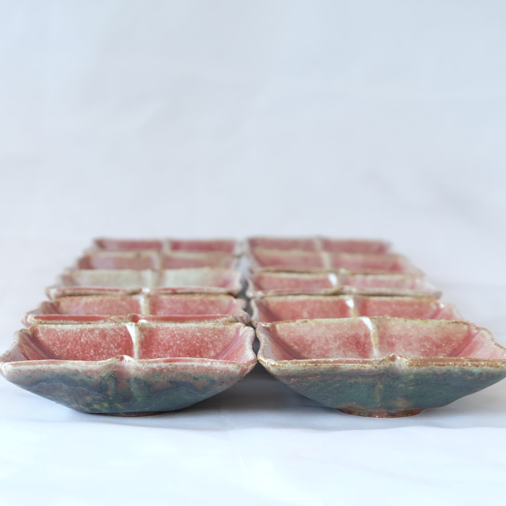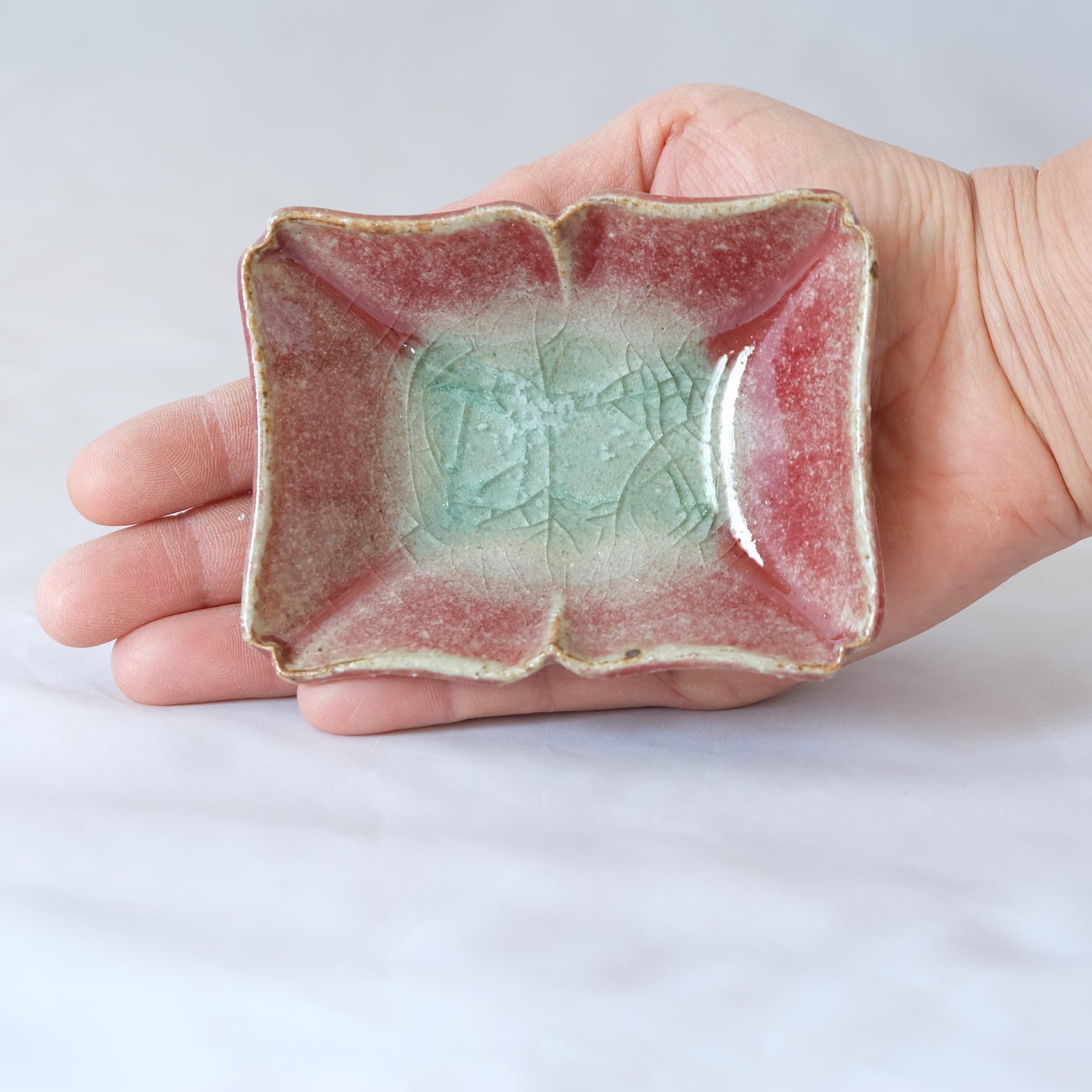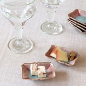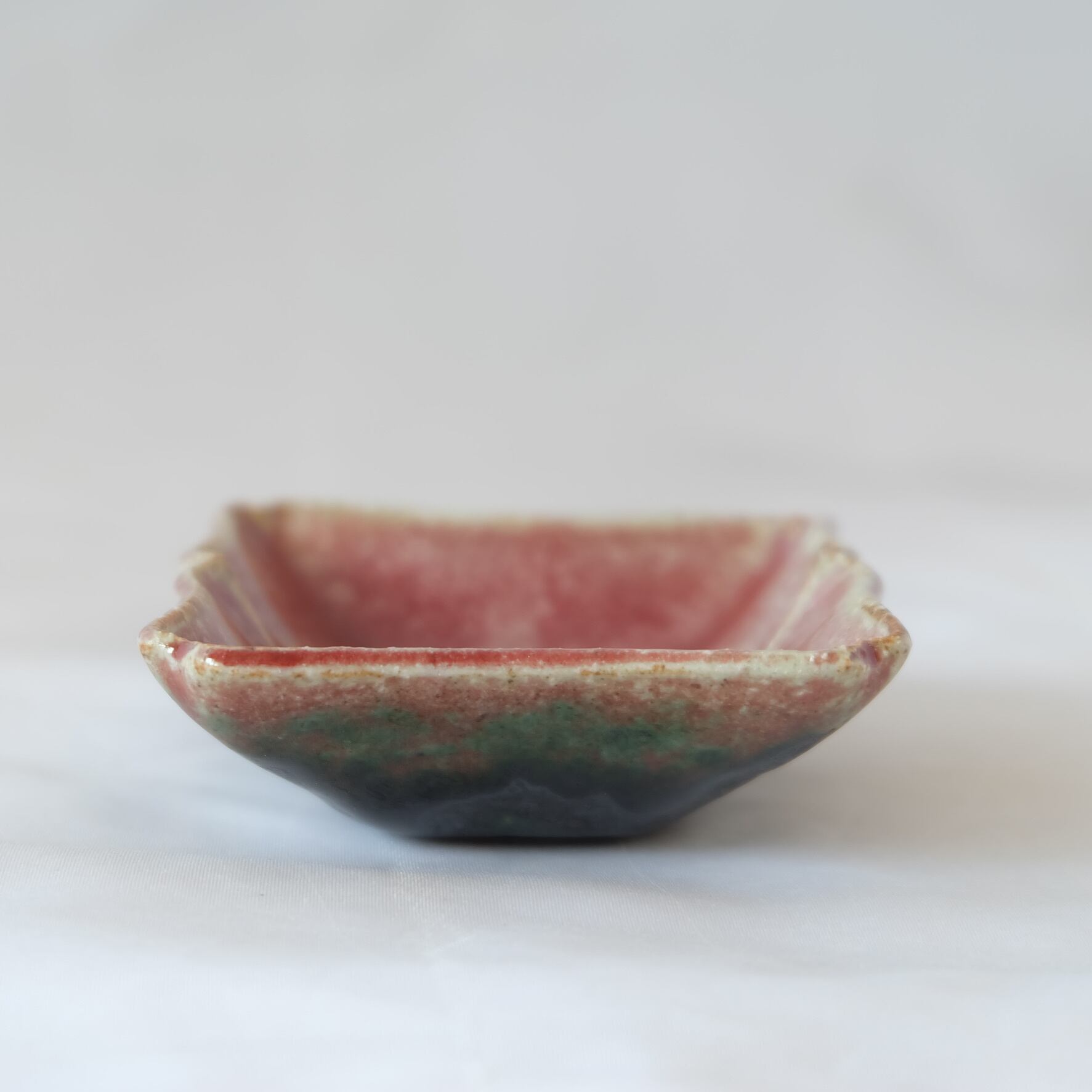 蝶をモチーフにした愛らしいデザインの角型の豆鉢。手のひらに乗るコンパクトなサイズでありながら、存在感ある形状が食卓を華やかに彩ります。ナッツやオリーブ、チーズなどのツマミにもぴったり。さらに、お茶菓子や調味料、お醤油やお塩、薬味入れとしてもお使いいただける多用途なアイテムです!