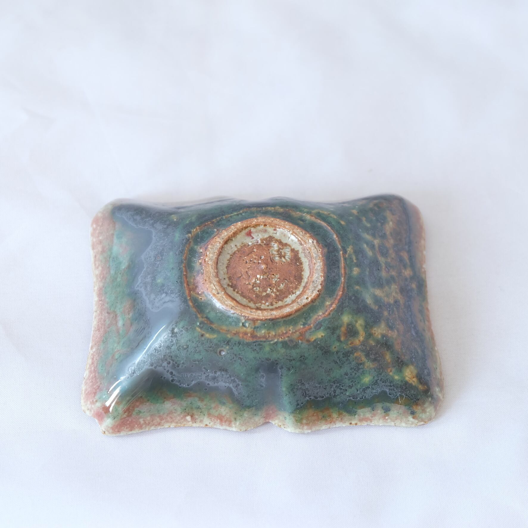 また、内側の見込み部分に白い結晶があることがございます。釉薬の特性上出るものですので、ご使用の際には問題ございません。また、お写真に示す通り陶土に含まれる鉄分が器の表面に出ることもございます。自然物ですので、焼き物の特性上ご了承下さい。