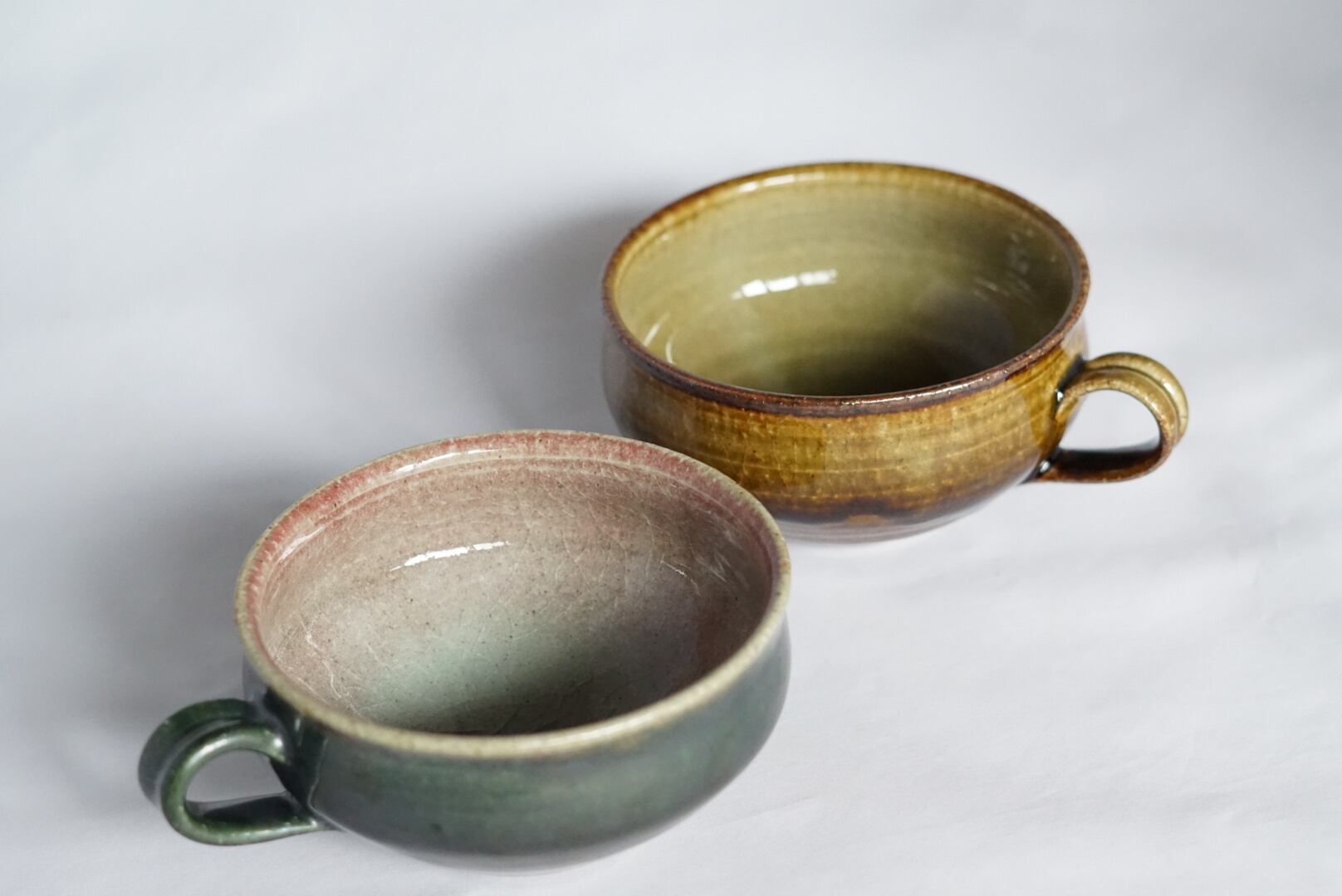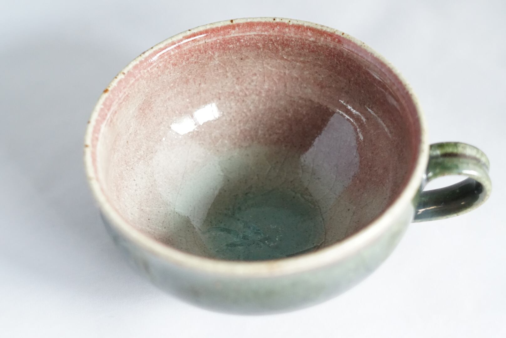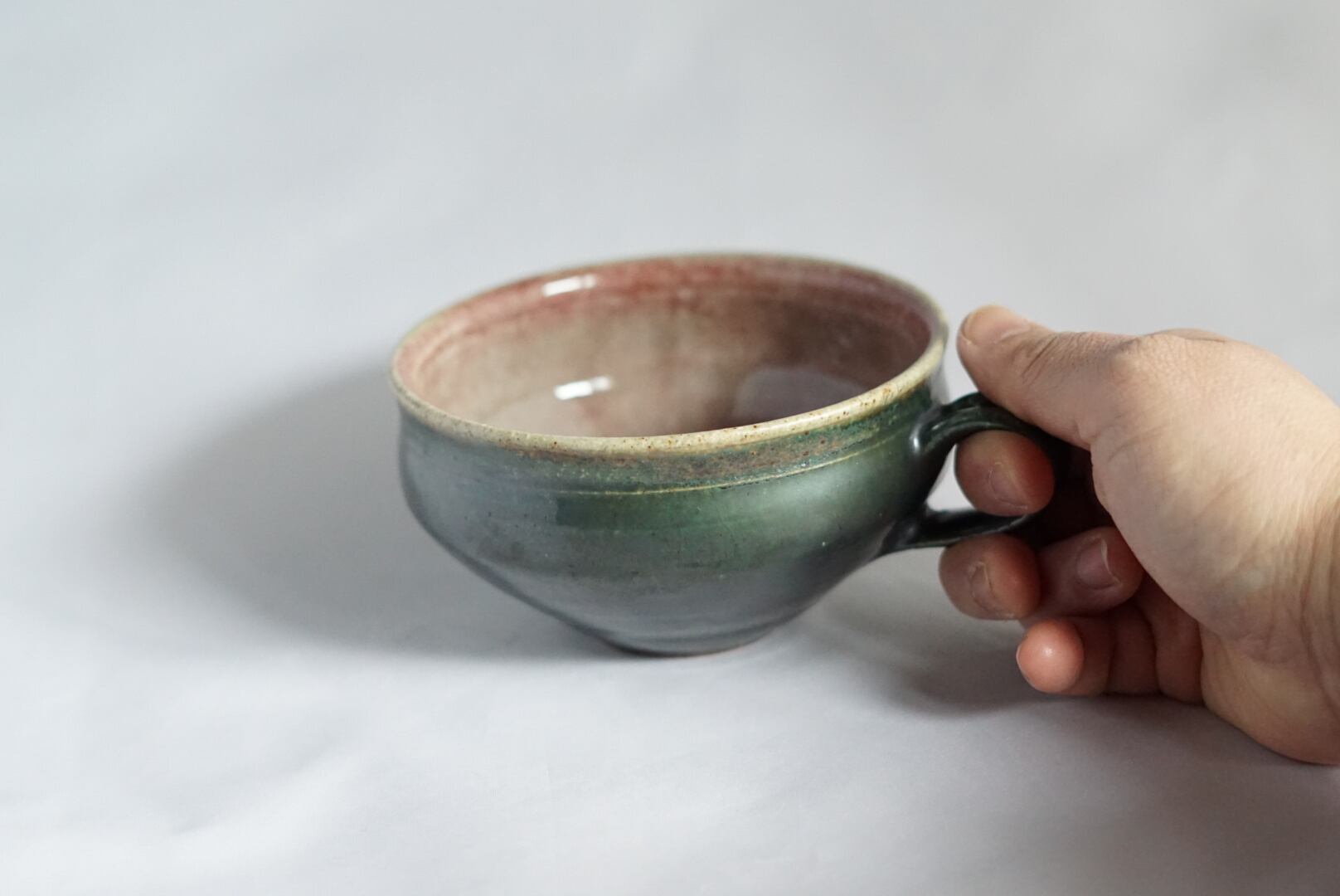 紅色と深緑のツートンカラーのスープカップ。