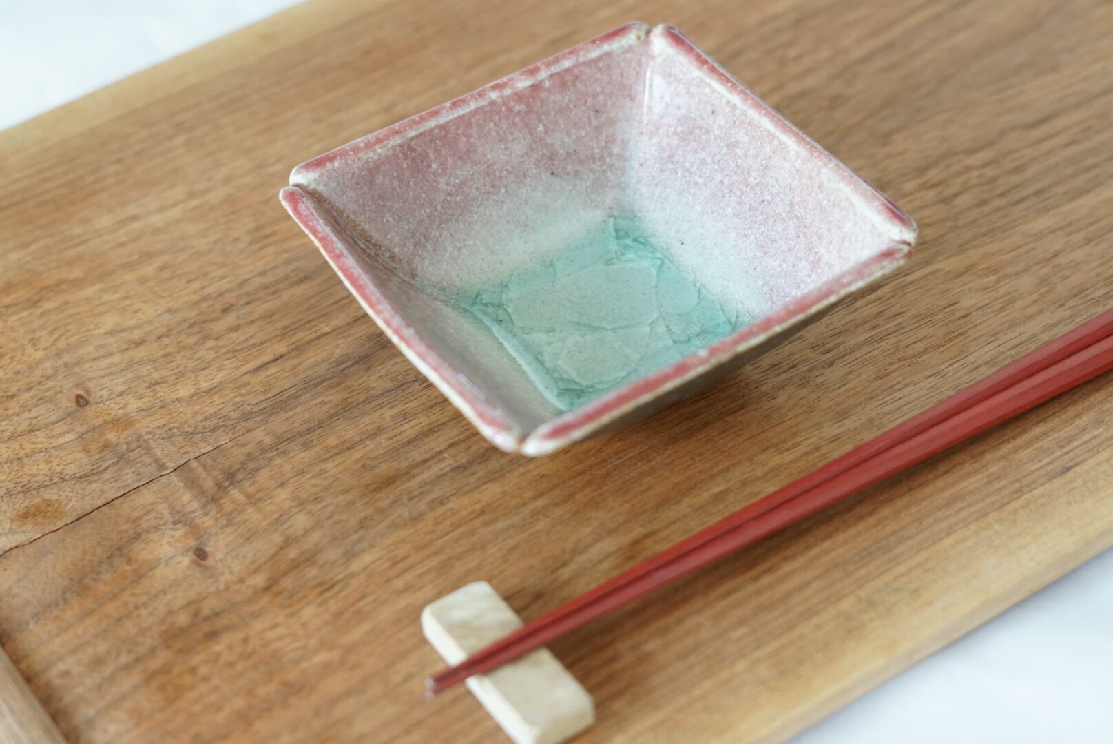 正方型の小鉢。折り返しの縁と隅切りのデザインがアクセントに。一品料理の盛り付けに是非。